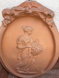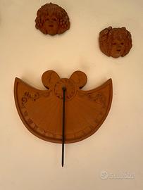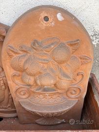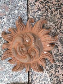 Vendo lotto completo di decorazioni da giardino in terracotta composto da: 1 orologio solare da parete decorativo 4 maschere decorative stile classico 2 bassorilievi in terracotta (motivi floreali e figura) 1 sole decorativo da parete Ideali per arredare giardino, terrazzo o muri esterni. Materiale resistente, in buone condizioni con normali segni del tempo. Vendo tutto insieme, non separo. Ritiro a mano. Prezzo leggermente trattabile.