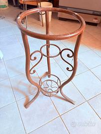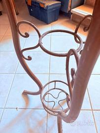 Vendo portavasi in ferro battuto, perfetto per valorizzare le tue piante sia in casa che in giardino. La struttura, è caratterizzata da linee curve e i dettagli in stile "ricciolo", lo rende un elemento decorativo unico. Dotato di un ripiano superiore con bordo rialzato e di un ripiano inferiore, ideali per ospitare due vasi. È solido e stabile, in buone condizioni, esattamente come in foto.. Lo vendo per cambio arredamento.
