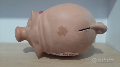 grande salvadanaio con scritta "solidale" a forman di maialino 30x18 cm
