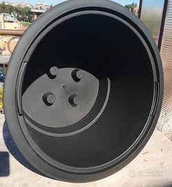 Grande vaso tondo di plastica robusta. Nero. Diametro=40 H=30. Fornito di maniglie estraibili. Adatto per giardinaggio (facilmente forabile alla base per messa a dimora piante) , ma anche in casa come coprivaso decorativo, contenitore multiuso, per il trasporto del bucato e di altri materiali, oggetti e liquidi, per impastare, per bricolage. Mai usato