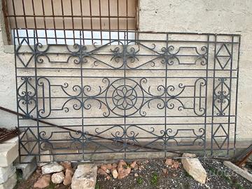 Disponibile grata in ferro battuto usata, trattasi di un pannello usato con terminale circolare da integrare all'esterno o all'interno di una finestra o vetrata con scopo decorativo e allo stesso tempo di protezione. Dimensioni pannello rettangolare ml 2,80*1,62 - altezza del terminale circolare cm 83.Sono escluse dal prezzo eventuali spese di spedizione e trasporto.