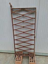 Era la grata della carbonaia di una villa ottocentesca. Ferro battuto a mano. Completa di cardini originali per murarla. Misure 92x41 cm. Ritiro sul posto a carico dell'acquirente.