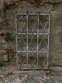 Bellissima, molto elegante e originalissima grata in ferro lavorato; potete vedere come gli intrecci si leghino senza alcuna saldatura, per altre foto chiedete pure. Tale grata proviene da un'antica casa del '700 ( periodo borbonico ) dell'entroterra siciliano. Condizioni come da foto