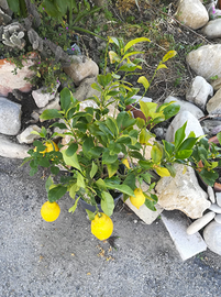 Vaso con 2 piante di limone bonsai con frutti già maturi pronti alla raccolta , piante con radici ben sviluppate di 4 anni . Per le sue dimensioni ridotte è adatta ad essere messa in appartamento , in balcone o terrazza . Pianta bellissima come in foto , foto reale . Spedizione express in tutta Italia compresa nel prezzo o possibilità di ritiro a mano zona Bologna .