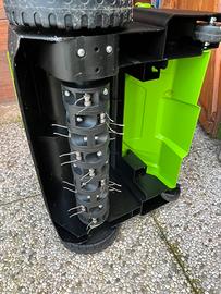 POTENTE RASTRELLO ARIEGGIATORE PER PRATI MEDIO-PICCOLI - 20 denti a molla ruotano 60 volte al secondo per rastrellare a fondo il prato e rimuovere muschio, cotica erbosa ed erbacce, migliorando il drenaggio e l'aerazione del terreno per un’erba più sana