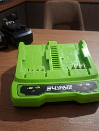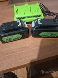 come da foto caricabatteria+ 2 batterie da 24v 4 Ah della greenworks seminuove . prezzo € 70,00 .per qualsiasi informazione non esitate a chiamarmi al 3346210254 carlo