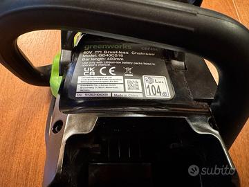Motosega a batteria Greenworks GD40CS18 in condizioni pari al nuovo, utilizzata una sola volta. Monta catena Oregon appena installata. La vendo per passaggio a motosega a scoppio professionale destinata a uso intensivo.