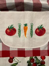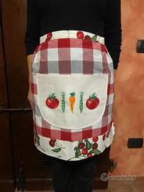 Grembiule a vita con tasca centrale ricamata a punto croce a mano. Il grembiule è un pezzo unico di artigianato realizzato interamente a mano.