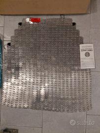 Rispondo SOLO a telefonata al 3384942778 Grembiule metallico professionale in alluminio nuovo in scatola. Protezione per macellai, salumieri e tutte le figure professionali che comportano uso di lame, in particolare attività di disossamento carni in quanto tra le più rischiose e pericolose. Molto leggero con bretelle regolabili alla corporatura. Indossabile con la fodera verde in robusto tessuto e con automatici al di sotto dell'abbigliamento di lavoro, evitando così sporco e necessaria pulizia. Inoltre 2 guanti metallici con trama in acciaio inox di 2 misure diverse, rosso medio e blu grande, nuovi sigillati. Richiesta 50 euro, spedizione 20 Telefonare a 3384942778
