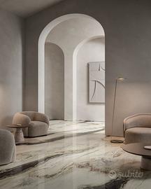 Vendo per eccedenza due (2) bellissime lastre in gres di Panda White di FMG. Le lastre compongono la venatura in foto e vengono vendute in coppia. Dimensione per lastra 150x150cm