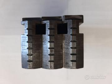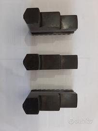 Tre griffe per autocentrante mandrino tornio o divisore per fresatrice. Materiale professionale rimanenza di officina. Misure in foto.