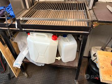 Griglia tutta acciaio inox piu piastra ferro piegata 6 mm piu pietr refrattaria piu girarrosto illuminata x serate tutto su ruote spostabile ovunque sia legna che carbone mai usata