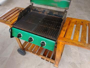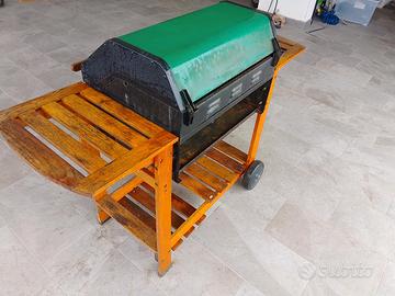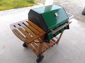Griglia a gas usata, perfettamente funzionante, ferma da qualche anno. Necessità di manutenzione solo estetica ed una pulita. Piastra doppia in vera ghisa, basamento e struttura in legno. No crepe, no rotture, no ruggine. Sempre tenuta sotto tetto. No spedizioni, ritiro a mano, pagamento solo contanti. Zona Palmanova