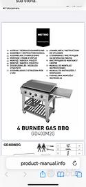 Barbecue a gas, 4 fuochi, completo di copertura ed accessori 4 BURNER GAS BBQ