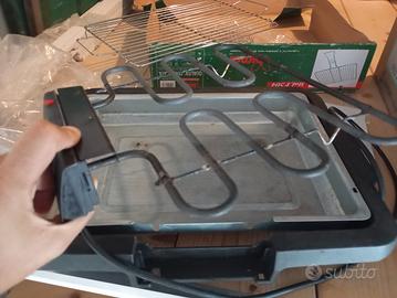 Griglia elettrica con vaschetta raccolta metallica antifumo, potenza resistenza 2000W smontabile, compresa doppia griglia. completa di scatola e istruzioni. Come nuova.
