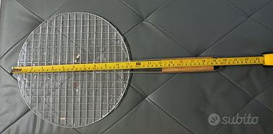 Griglia rotonda con pratico manico in legno, ideale per il barbecue. - Griglia in metallo resistente. - Manico in legno per una presa comoda. Nuova.