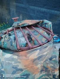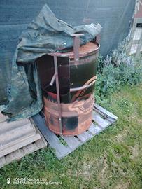 Vengo griglia veneta, per fare grigliate a legno, con griglia in acciaio inox da cm. 100, carrello e bidone modificato, con griglia, apertura sotto e tre piedini, per fare le bronze