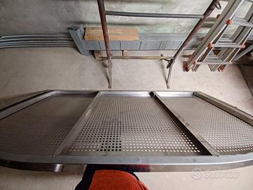 Grigliato in acciaio inox 210x108 con i bordi ripiegati a C per 5cm,più traverse posteriori per dare solidità al tutto.Ideale come tamponamento di areazione in scantinati garage ecc...oppure incorniciato con tubolare come cancello barriera ecc...