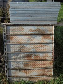 Griglie in ferro rinforzate con capacità di carico di circa 4.000 kg ciascuna. 22 griglie non forate, misure 75 x 99 cm. Vendita in blocco.