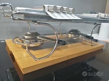 PRODOTTO NUOVO GRILL DA TAVOLO MAI UTILIZZATO CON BASE IN LEGNO E PIETRA OLLARE 2 BRUCIATORI CON INNESCO ORIGINALE IMBALLATO 8 FORCHETTONI NUOVI PREZZO 30€