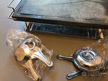 Scaldavivande da tavolo con pietra olare e due fuochi; tutto come da foto. No spedizione