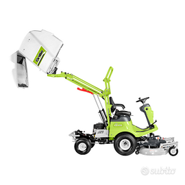 I comandi per regolare l'altezza di taglio e alzare il piatto, per sollevare e scaricare il cesto, sono a pulsante elettrico.
