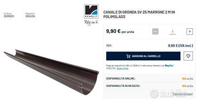 - materiale mai montato e assolutamente immacolato (nessun graffio) conservato in modo maniacale al chiuso. vendesi a metà prezzo rispetto a quello di acquisto presso tecnomat ed esattamente: grondaie 5x12= 60 euro