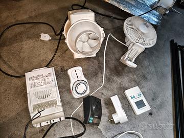growbox alta 2 metri con piano 1 metro per 1 metro con tutti gli accessori, luci aria temporizzatori ventilatori ecc