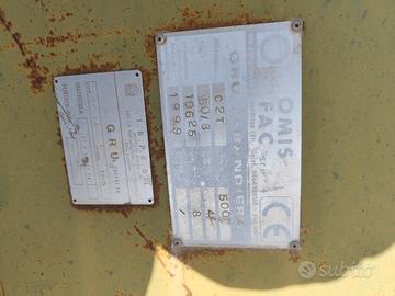 gru a bandiera OMIS altezza MT.4 lunghezza. mt.8 portata 500 kg completa di carrello e paranco eletrico