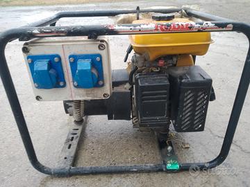 Gruppo elettrogeno usato ma in ottimo stato, marca Robin, di potenza massima di 2, 8 kW e potenza continua da 2,5 kW. a 230 volt, funzionante a benzina (4 tempi) dotato di 4 prese di corrente e di attrezzi corredo.