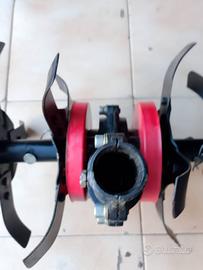 E' un accessorio coltivatore (o testa per mini motozappa) progettato per essere montato sull'asta di un decespugliatore standard. Questo strumento viene utilizzato per lavori di giardinaggio e agricoltura leggera, in particolare per: Sarchiatura e diserbo: Rimuove efficacemente le erbacce e la vegetazione indesiderata. Arieggiamento del terreno: Le lame rotanti rompono la crosta superficiale, permettendo al suolo di "respirare" e assorbire meglio acqua e sostanze nutritive. Preparazione del letto di semina: È ideale per sminuzzare la terra in piccoli orti, serre o aiuole dove le motozappe tradizionali sarebbero troppo ingombranti Caratteristiche principali L'accessorio è composto da un gruppo di zappette in metallo montate su un asse centrale, azionato da un ingranaggio che si collega alla trasmissione del decespugliatore.diametro asta da 25 !vendo per non utilizzo