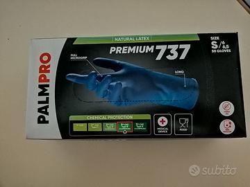 Guanto monouso in LATTICE DI GOMMA NATURALE di colore blu ad alta resistenza sottoposto a processo di clorinazione e senza polvere lubrificante. Ambidestro con bordino, a finitura interna opaca ed esterna microruvida, di spessore e lunghezza maggiorata. Ottima elasticità anche a basse temperature. Ottima resistenza chimica a detergenti e detersivi diluiti ed a soluzioni acquose di composti in genere. Eccellente elasticità anche a basse temperature.