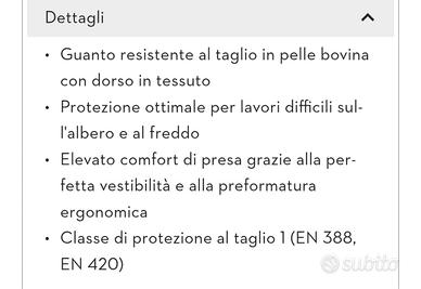 guanti antitaglio Sthil per utilizzo motosega tg Xl modello protect ms