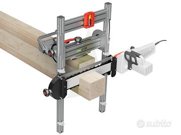 La linea laser mostra l'esatta posizione del taglio lateralmente e anche sopra la barra. Compreso motosega elettrica e cassa in legno