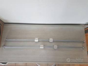 Vendesi 2 guide lineari in acciaio temperato da 25mm lunghezza 1500mm con 4 supporti e 4 cuscinetti di scorrimento. Perfette condizioni