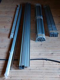 Vendo kit in alluminio per tapparelle e zanzariere, venduto a coppie, completo di spazzole paraspifferi, stecche angolari e tappi di chiusura. Disponibile nelle seguenti misure: