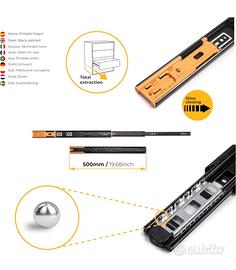 12 pz - Guide con cuscinetti a sfere, estrazione totale e chiusura ammortizzata/soft del cassetto di lunghezza 500 mm, larghezza 45 mm, esteazione compelta (980 mm).