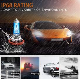 【130% super luminoso】 La buona messa a fuoco e l'irradiazione a lungo raggio offrono una migliore visibilità, fino al 130% in più di luce sulla strada rispetto a una lampadina alogena originale standard, possono ancora vedere chiaramente la strada in caso di nebbia, tempo e pioggia.
