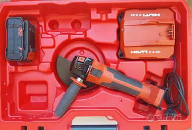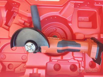 Vendesi flessibile angolare Professionale Hilti AG 6D-22 150 Nuron, in eccellente stato, quasi nuova, SOLO CORPO MACCHINA NELLA VALIGETTA. Potente smerigliatrice angolare a batteria con motore brushless, controllo SensTech e 3D ATC, si ferma da sola appena si allenta l'impugnatura, funzioni di sicurezza avanzate per dischi fino a 150 mm (piattaforma a batteria Nuron) Dati tecnici Voltaggio nominale 21.6 V Diametro disco 150 mm Peso corpo dell'attrezzo 2 kg Profondità di taglio max 46 mm Senza carico, giri/minuto marcia 1: 8500 giri/min. Dimensioni (LxPxH) 300 x 83 x 132 mm Livello di pressione sonora (A) misurato 88 dB (A) 1 Valori di vibrazione triassiali per smerigliatura angolare (ah,AG) 6.2 m/s² 2 Peso senza batteria come da Procedura EPTA 01/2003 2 kg Prezzo nuovo oltre 760 euro. Si preferisce consegna a mano a Firenze e Prato. No perditempo, solo persone serie! Grazie. P.S. si possono aggiungere una batteria da 5 Ah e un caricabatteria rapido C6-22 ad un prezzo di 180 €.