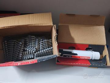 Vendo per inutilizzo, sparachiodi sia su ferro ferro che ferro cemento, compreso nel prezzo due scatole chiodi e bombole gas, per ferro e cemento.