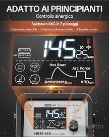 HITBOX 145A Saldatrice a Filo Continuo 4 in 1 – Saldatrice 230V con Display LED – Macchina per Saldatura MIG/ARC/Lift TIG/Spool Gun con Nucleo di Flusso (HBM145)