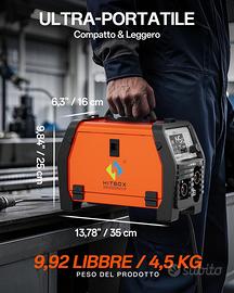 【Design Compatto e Portatile】Con soli 4,5kg e dimensioni ridotte (35x16x25cm), questa saldatrice a filo continuo è perfetta per cantieri. Include protezione EPS per trasporto sicuro.