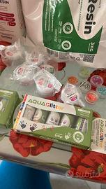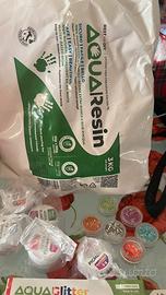 Nuovo aperto per fare le foto ,kit di resina epossidica con glitter ,pigmenti e colore , resina ad acqua con colori ,non posso aggiungere altre foto ,ma vi mando la lista dettagliata della fattura di cosa c’e dentro