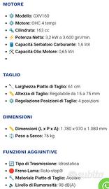 Vendo Falciatutto Honda mod UM 616 causa inutilizzo come nuova usata circa una decina di ore .le caratteristiche sono nelle foto.non spedisco.