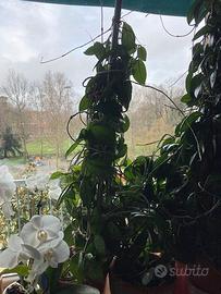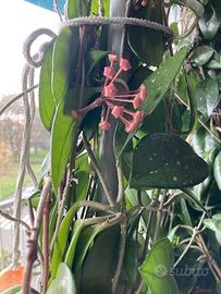 Vendo piante di Hoya carnosa detta fiori di cera o di porcellana, sono piante riprodotte da me tenute in casa e quindi acclimatate da più di 3 anno sono già in fiore e produrranno fiori per tutta l'estate dallo stesso peduncolo più quelli che si aggiungeranno man mano sono delle piante già grandi con tralci che se srotolati superano i 2 metri le foto che vedete la prima è di repertorio le altre sono reali necessita soltanto di tanta luce
