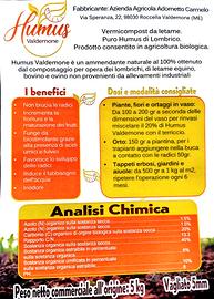 Vendo humus Valdemone, ammendante biologico di alta qualità, sacco da 5 kg, vagliato a 5 mm per una consistenza uniforme e facile da lavorare.