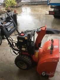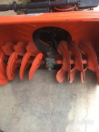 Spazzaneve di grandi prestazioni con sistema a due stadi con fresa e turbina, avviamento elettrico, velocità di avanzamento variabile e sterzo assistito con frizione. Il design professionale assicura robustezza, durata e risultati di prima classe indipendentemente dalle condizioni della neve. Specifiche per ST 268EP Motore Produttore motore Briggs & Stratton Tipo motore Snow Series MAX Nome motore 1450 Series Cilindrata 305 cm³ Potenza netta a numero giri preimpostato 7,1 kW @ 3600 giri/min Volume serbatoio carburante 3 l Sistema trazione Marce trasmissione avanti 6 Marce trasmissione retromarcia 2 Capacità Tipo soffiante A due fasi Larghezza utile 68 cm Altezza di convogliamento 58,5 cm Diametro fresa 30,5 cm / 12 " Diametro turbina 12 pollici Dotazione Catene da neve Disponibile come accessorio Dimensioni Dimensione pneumatico, singolo asse 16x6,5 pollici Peso 107 kg Dati rumorosità Livello di pressione acustica all'orecchio dell'operatore 88 Sistema a due stadi La neve viene efficientemente convogliata all'interno della macchina tramite una fresa, dopodichè viene espulsa lontano tramite il camino da una ventola ad alta velocità. Velocità di avanzamento variabile Velocità di avanzamento variabile, sia in avanti che in retromarcia. Controllata tramite una leva sul pannello. Sterzata assistita L'opzione per poter disconnettere il blocco differenziale e scegliere quale delle ruote deve avanzare (frizione di sterzo) rende la macchina estremamente facile da manovrare e far funzionare. Avviamento elettrico Collegare ad una presa di corrente ed avviare il motore premendo un pulsante. Quando poi il motore è caldo, sarà facile farlo eventualmente avviare in un secondo momento anche con l'impugnatura della fune di avviamento. Blocco del differenziale Il blocco del differenziale consente alla macchina di essere guidata con entrambe le ruote. Questo, unito al marcato battistrada sui pneumatici, assicura una eccellente trazione. Impugnature riscaldate Per ancor più confort