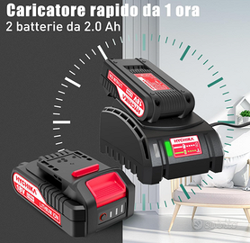 DUE PACCHI BATTERIA E CARICABATTERIE RAPIDO: Dotato di due batterie da 2,0 Ah, l'indicatore di installazione e il caricabatterie rapido possono prolungare la durata della batteria e l'orario di lavoro. La batteria può essere caricata completamente in un'ora