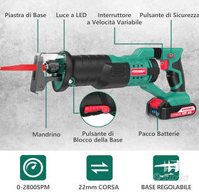 GOPPIO SISTEMA DI SICUREZZA E SOSTITUZIONE LAMA SENZA ATTREZZI: Grazie al doppio sistema di sicurezza, il seghetto funziona solo se entrambi i pulsanti sono premuti in modo da ridurre il rischio di infortuni. Il sistema di sostituzione della lama e rapido e non richiede strumenti, per una rapida sostituzione della lama stessa