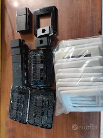 set di interruttori, placchette e copri placchette, verniciate bianche e nere